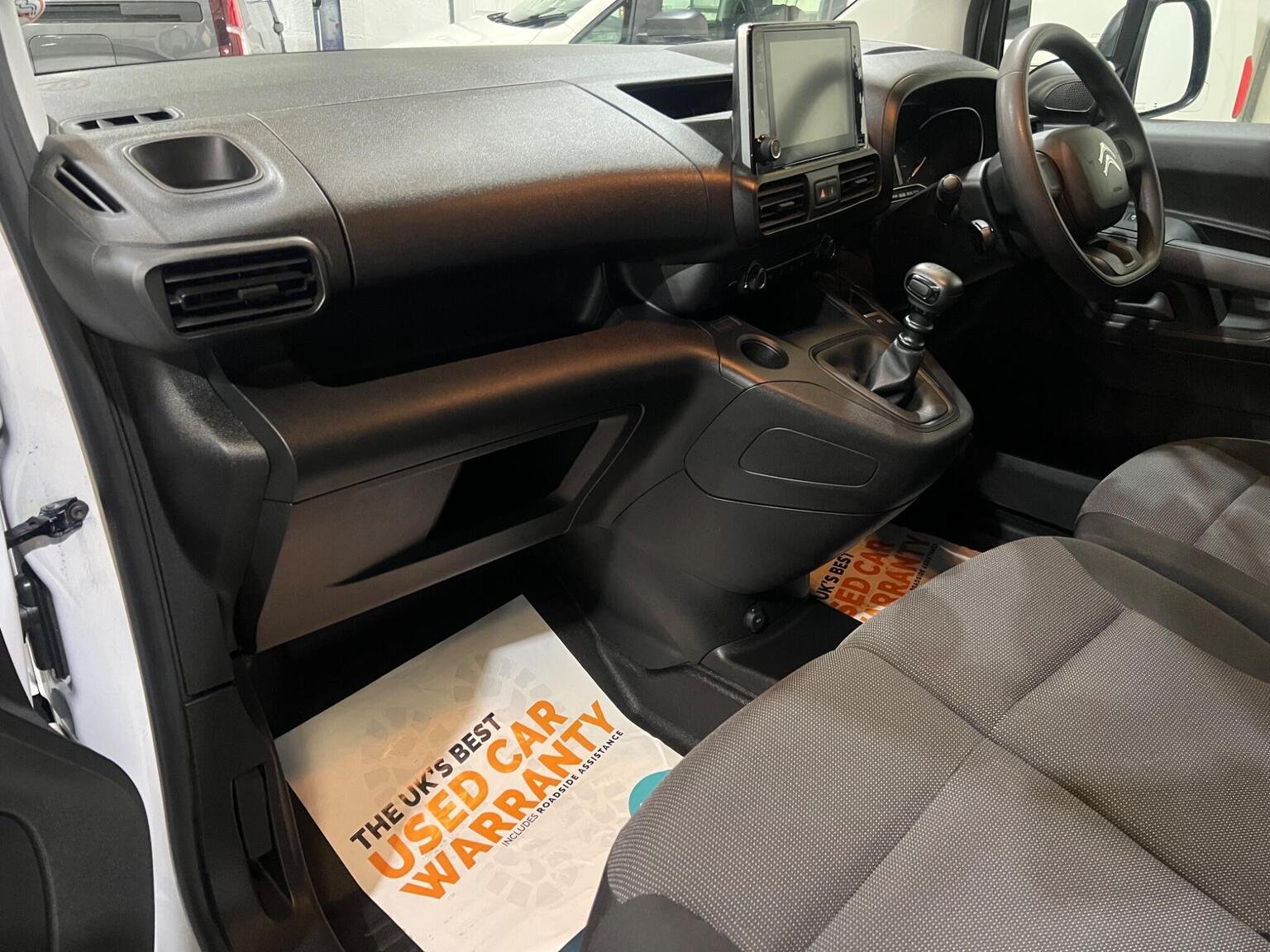 12V Socket in Dashboard, 16in Steel Wheels with Black Centre Cap, 6 Floor-Mounted Load Securing Rings, 8in Colour Touchscreen with Citroen Connect DAB Radio - Bluetooth Handsfree - USB Socket, Air Conditioning, Airbags - Driver, Alarm - Parametric and Volumetric - Thatcham Category 1 Approved Alarm with Tilt Sensor, Automatic Activation of Hazard Warning Lights on Major Deceleration, Citroen Connect Box with Emergency and Assistance System, Cruise Control with Programmable Speed Limiter, Cup Holders for Driver and Passenger on Either Side of the Dashboard, Dashboard Mounted Central Locking Push Buttons and Auto Locking Above 7 MPH, Door Opening Warning Light and Audible Lights-On Warning, Driver and Passenger Seatbelt Unfastened Warning, Drivers Seat - 4-Way Adjuctable with Adjustable Headrests, ESC with Hill Start Assist - ABS Braking including EBA and EBFD, Electric Power Assisted Steering with Reach and Rake Adjustable Steering Column, Electric Windows - Front with One Touch Operation, Electrically Adjustable Door Mirrors with Temperature Sensor, Free2Move Connect Fleet Telematics (6 Month Subscription From New), Front Door Pockets with 1.5L Bottle Holders, Full Bulkhead Compliant with ISO27956, Hard Plastic Floor Protection in Cabin, Height Adjustable Halogen Headlights, High Level Third Brake Light, Lockable Fuel Cap, Manual Folding Exterior Mirrors, Manual Parking Brake, Mirror Screen - Apple CarPlay - Android Auto, Multi-Function On-Board Trip Computer, Nearside Side Sliding Door, Overhead Storage Shelf in Cabin, Puncture Repair Kit, Remote Central Locking with Deadlocks, Rev Counter with Maintenance and Gear Efficiency - GEI - Indicators, Rolling Code Transponder Immobiliser, Side Rubbing Strips, Single Passenger Seat, Top Box Storage Compartment, Two-Speed and Intermittent Front Wipers, Tyre Pressure Monitor, Unglazed Asymmetric Rear Doors Opening to 180 Degrees, Visible VIN at Base of Windscreen